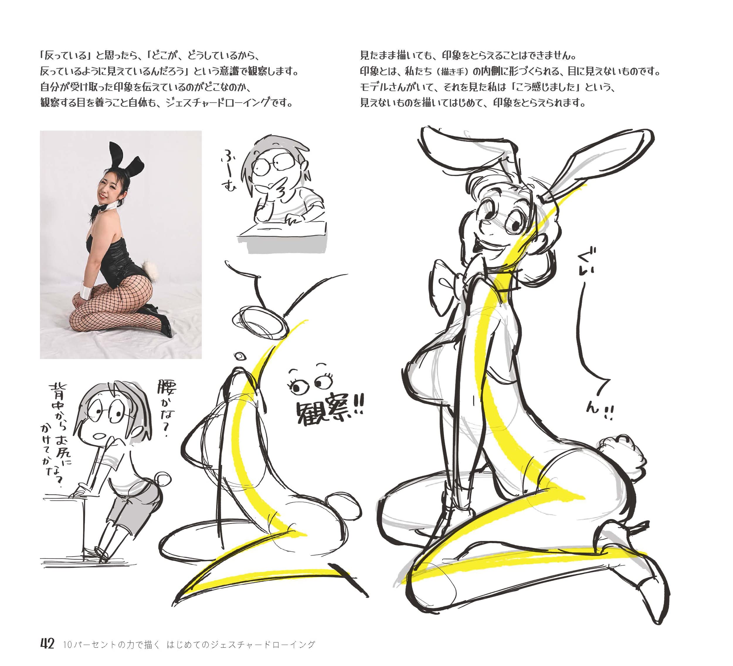 その中で本書は「10%の力」=「トイレでカレンダーにラクガキするぐらいの力」で、ジェスチャードローイングを身に着ける為のハウツーが丁寧に記されている。