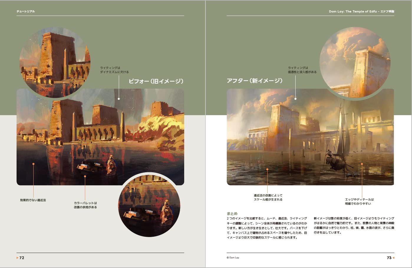 『デジタルアーティストが知っておくべきアートの原則』では、色、光、遠近法、奥行き、構図、解剖学などを取り上げました。本書「ビフォー&アフター」では、自分がどれだけ、それらの「アートの原則」を実践できているかを評価し、問題を特定し、解決できるようします。