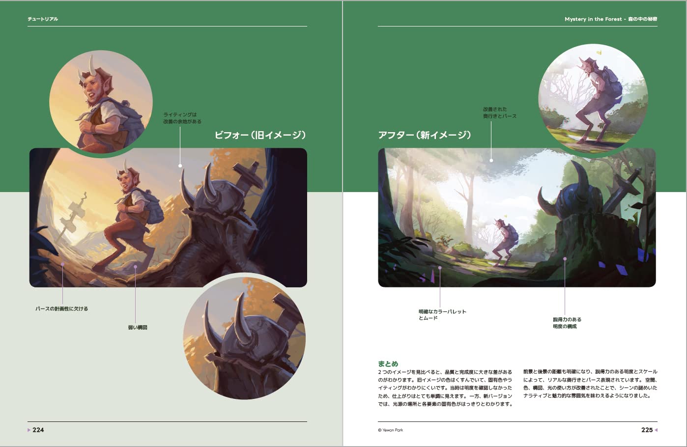 作品を次のレベルに引き上げるために、感情やムード、ナラティブ(物語性)を持たせるといったテーマが探求されています。本書は、絵を描くときに常に傍らに置き、批評し、修正し、技術を向上させ、作品をレベルアップさせる1冊です。
