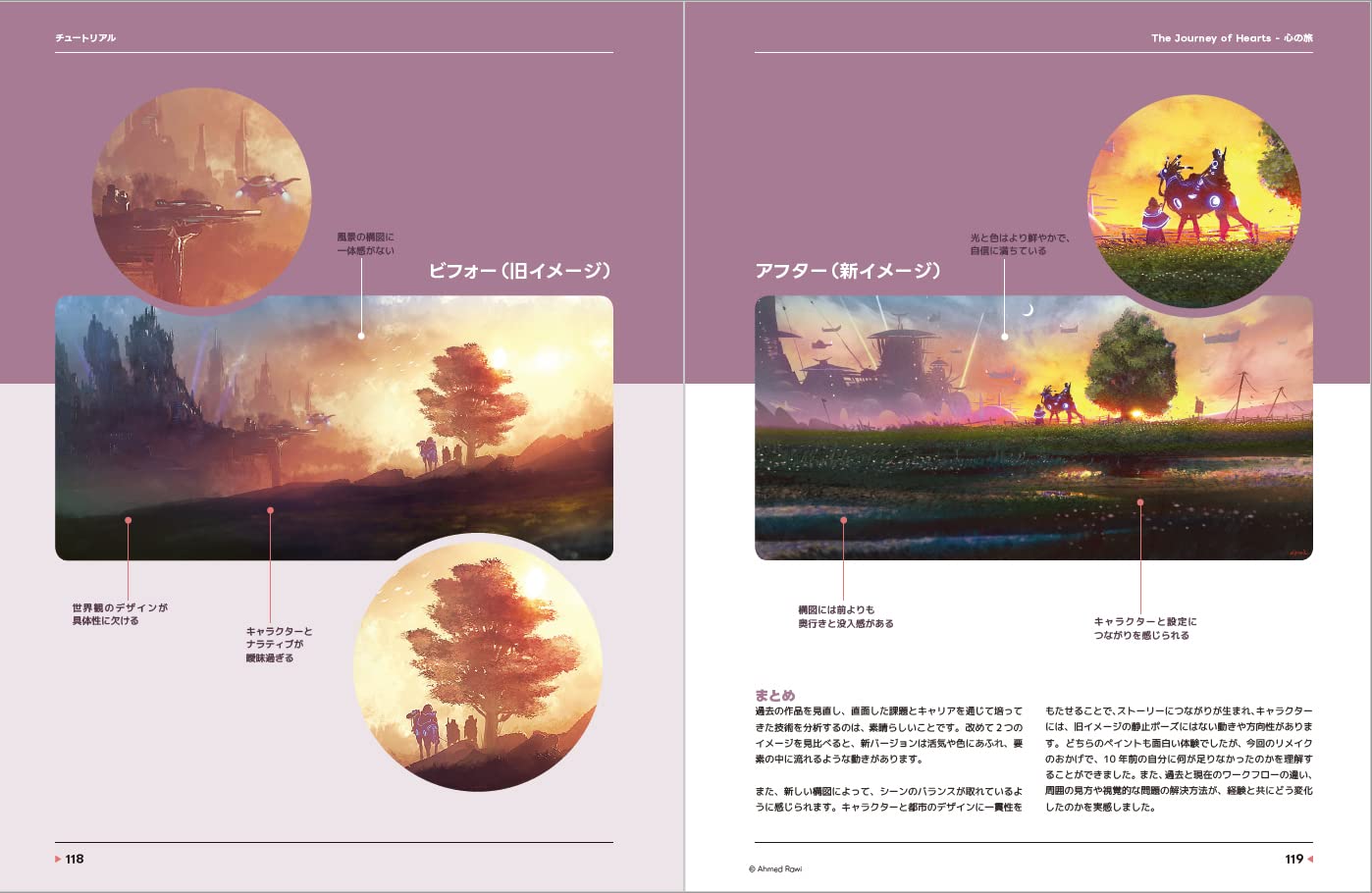 15名の専門家、プロのイラストレーター・コンセプトアーティストたちが、自分の過去作を例にして、どのように間違っていたのか、そして、その改善点を見つける方法を明らかにします。そして、その方法を説明するだけでなく、実際に「アートの原則」を基に改良した、リメイク版を披露します。